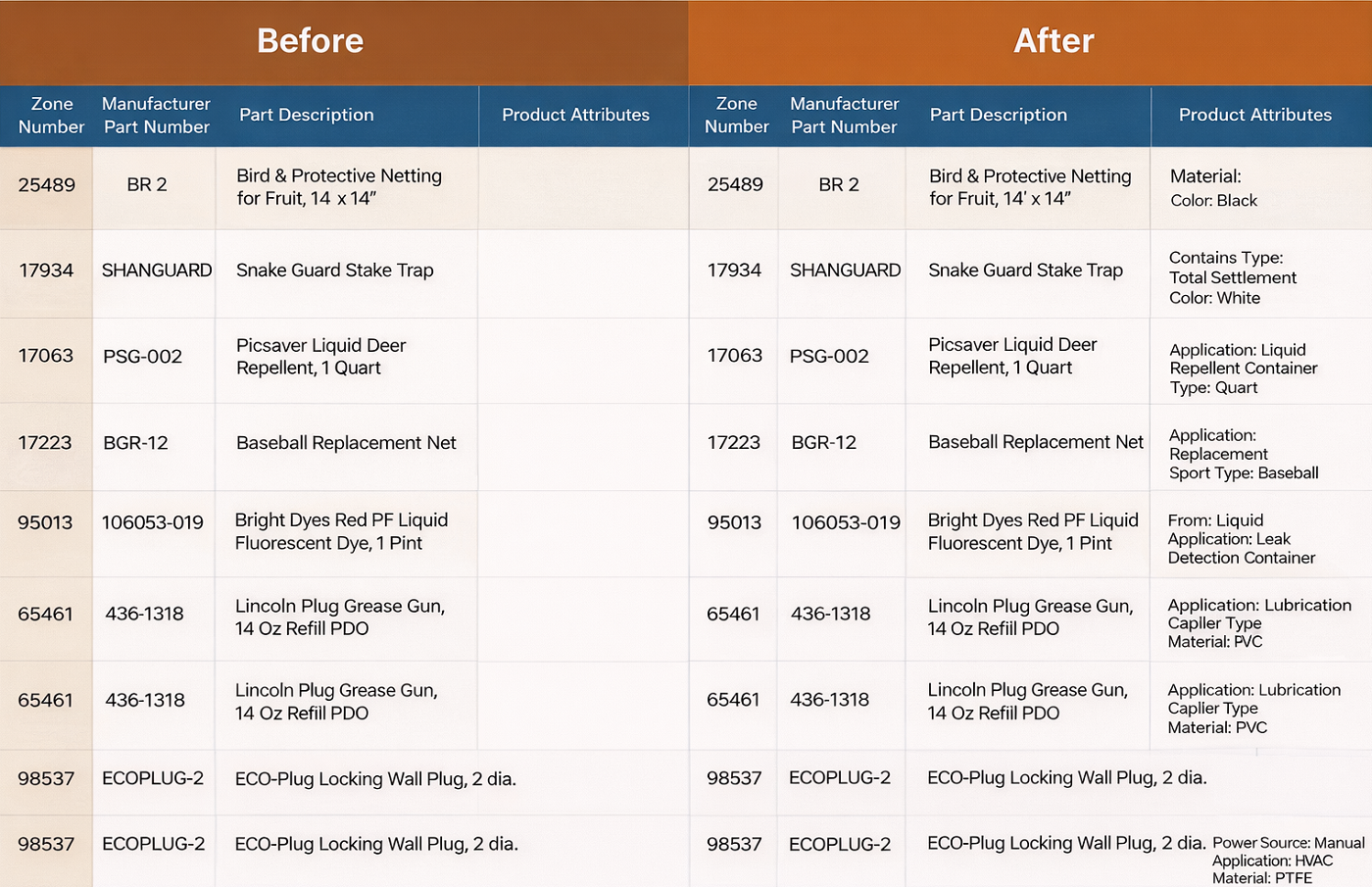 We assign all critical attributes. Through multi-level QA, we ensure product data is accurately structured and categorized.